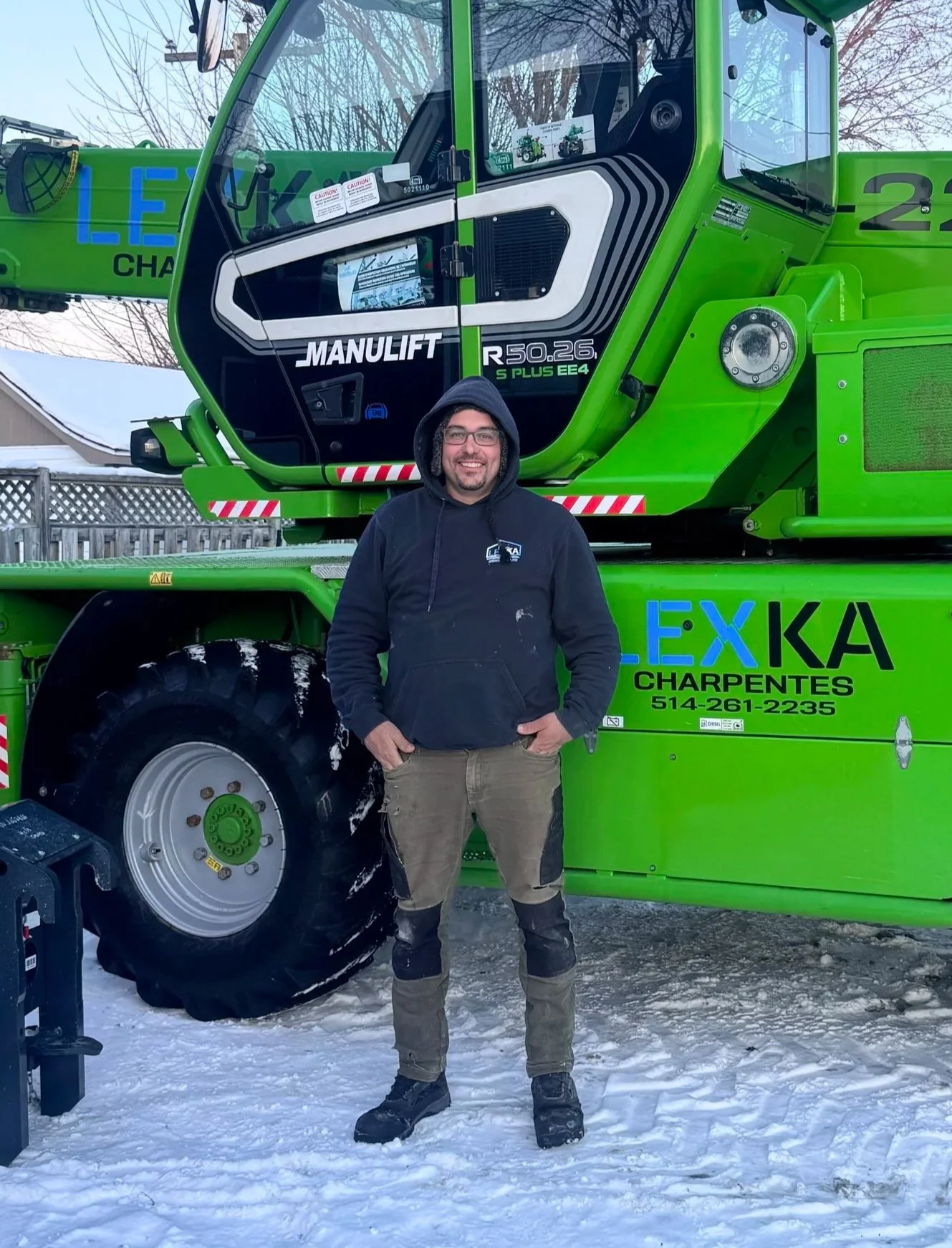 Nous avons investi dans une flotte complète : 2 remorques, 3 camions, chariot élévateur à mât télescopique et roto Manulift, permettant de gérer des projets complexes et de grande envergure avec sécurité et efficacité.